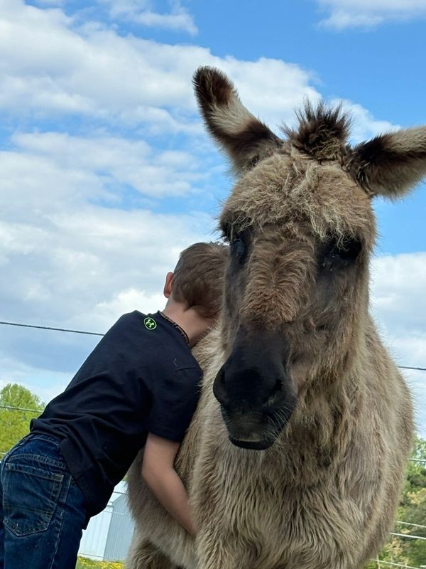 Fiona the Donkey made Campbell's Lane Farm her home on February 1, 2020. We suspected that she might be pregnant when she arrived. On May 25, we noticed that Fiona was pacing the fence line. A few hours later we saw that she had delivered a baby boy in the field! We quickly prepared a stall for mom and baby. Fiona wasted no time teaching her boy how to be a well-behaved jack. His name is Silas Paul. Silas in some traditions means “asked for, prayed for” and Paul was Anne's Campbell grandfather.